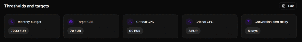 Adsroid Copilot relies heavily on the thresholds and targets you define in your project.